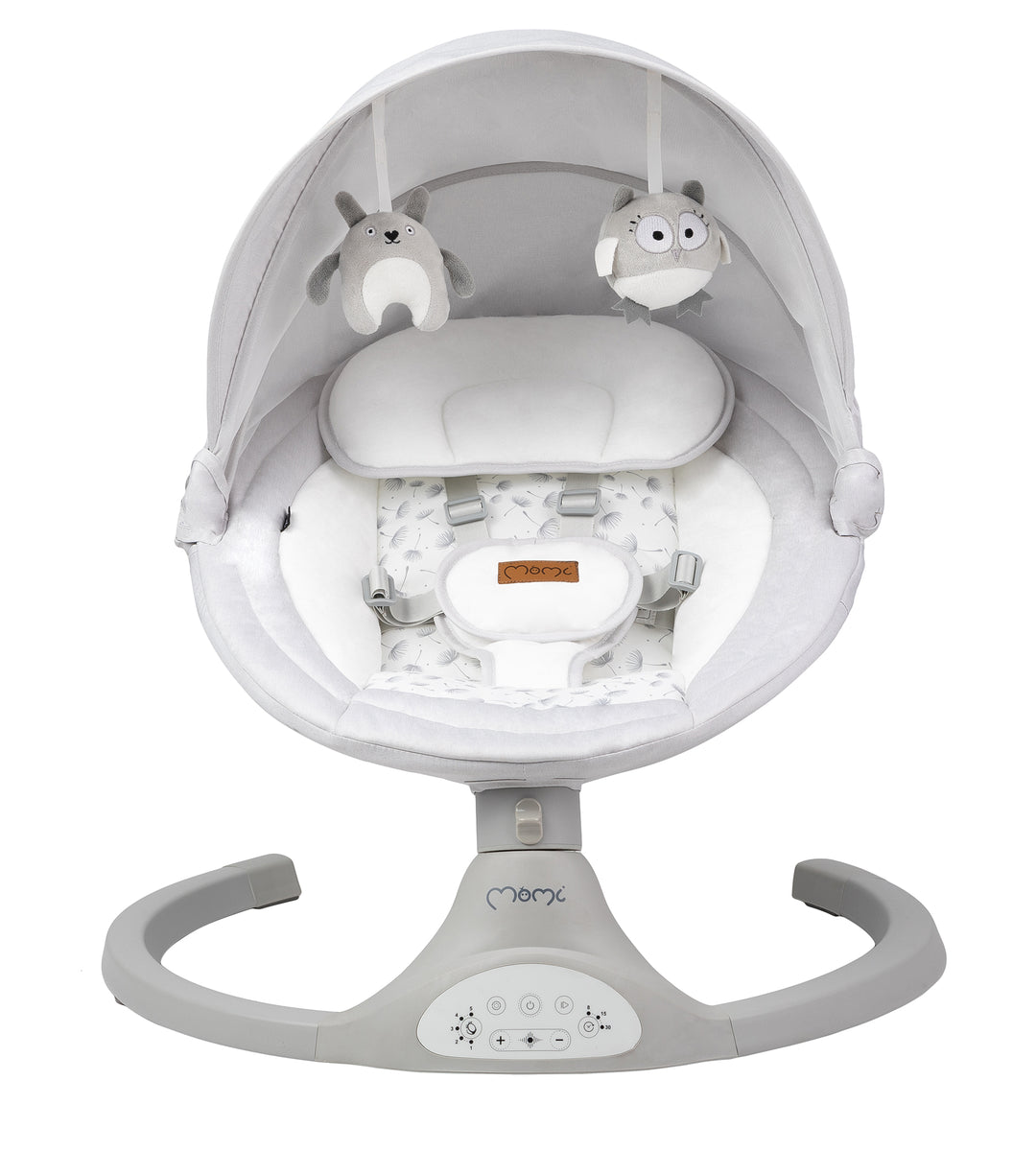 The MoMi Kenani Baby Swing is equipped with a range of convenient features that make it easy to use and perfect for busy parents. The electric motor provides a gentle rocking motion to soothe and calm your baby, The built-in sound system includes a variety of calming lullabies and nature sounds to help your baby relax and fall asleep.